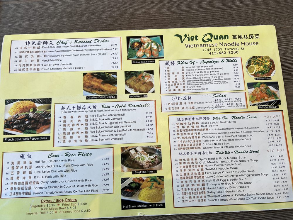Welcome to Viet Quan Vietnamese Noodle House, a delightful gem nestled in Parkside, San Francisco. Specializing in Vietnamese cuisine, this noodle house offers a rich menu perfect for both lunch and dinner. Flourishing since its opening in April 2022, Viet Quan is celebrated for its authentic dishes and warm service.