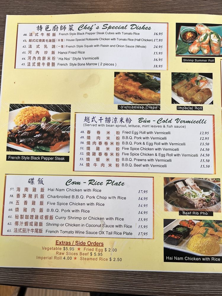 - Vermicelli Bowls: Savor the BBQ Pork with Vermicelli ($19.95) or the Fried Egg Roll with Vermicelli ($17.95) for a refreshing meal.